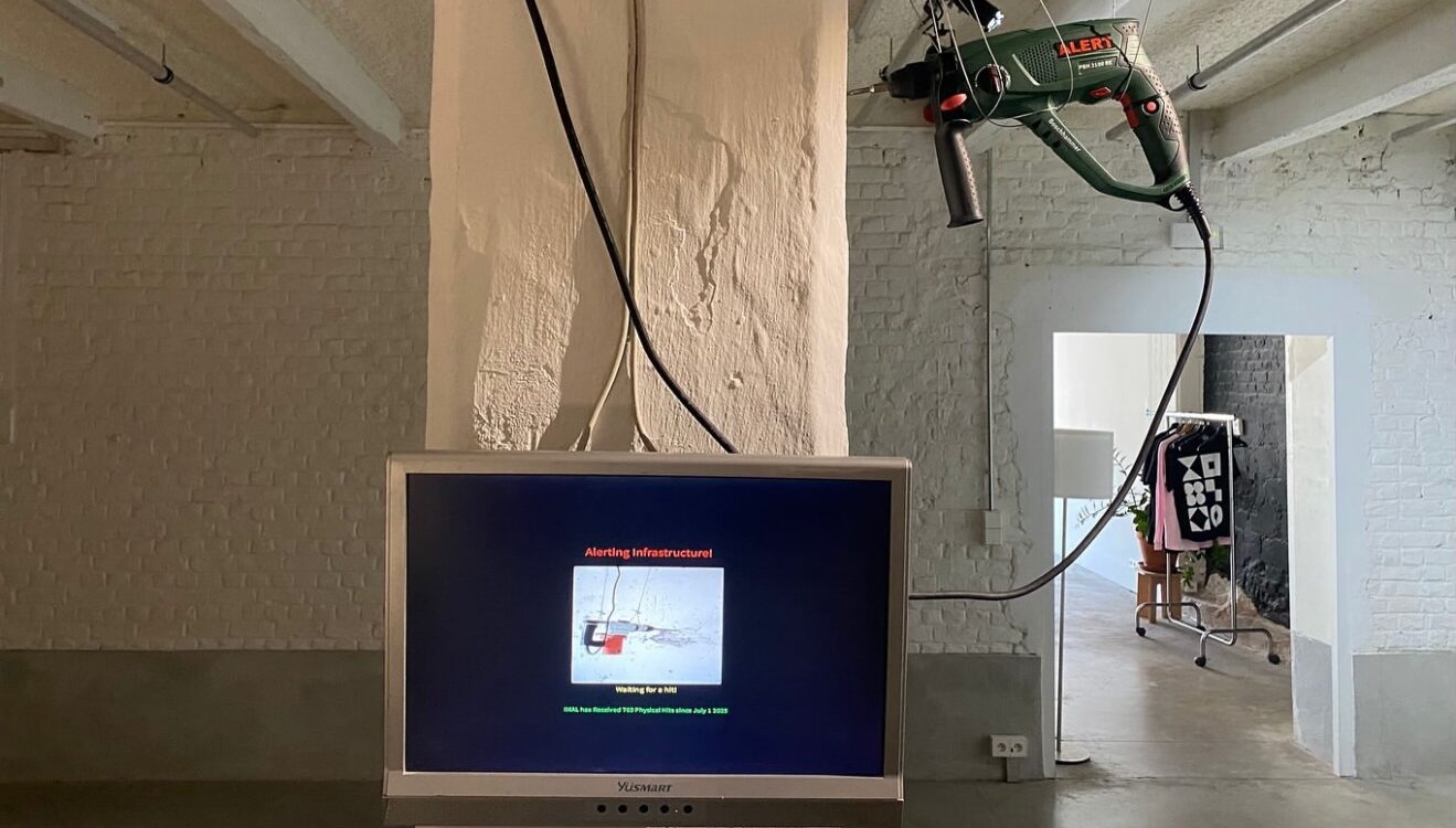 Picture is an installation view of Brucker-Cohen’s project “Alerting Infrastructure!” (2003). Image courtesy of the artist.