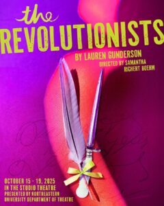 Four beautiful, badass women lose their heads in this irreverent, girl-powered comedy set during the French Revolution’s Reign of Terror. Playwright Olympe de Gouges, assassin Charlotte Corday, former queen (and fan of ribbons) Marie Antoinette, and Haitian rebel Marianne Angelle hang out, murder Marat, and try to beat back extremist insanity in Paris 1793.