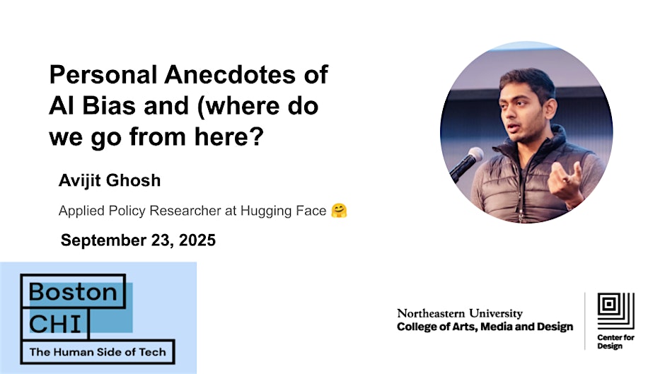 BostonCHI, in partnership with the Center for Design, presents a hybrid talk by Avijit Ghosh.