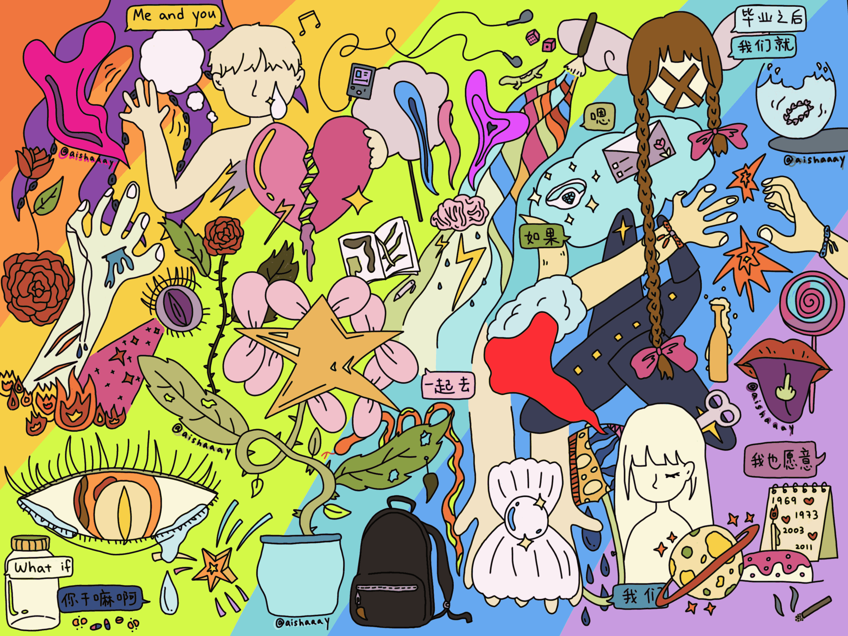 Purpose of Project: Both “chapter1” and “chapter2” are my personal work and they belong to the same consistent series. They are a projection of my inner feelings and the thoughts in my mind. I have gathered my ideas and inspirations from my life, my dreams, and visualized them in an illustrated way. It is a showcase of my chaotic mind. I hope to find my true self and accept it along the way.
