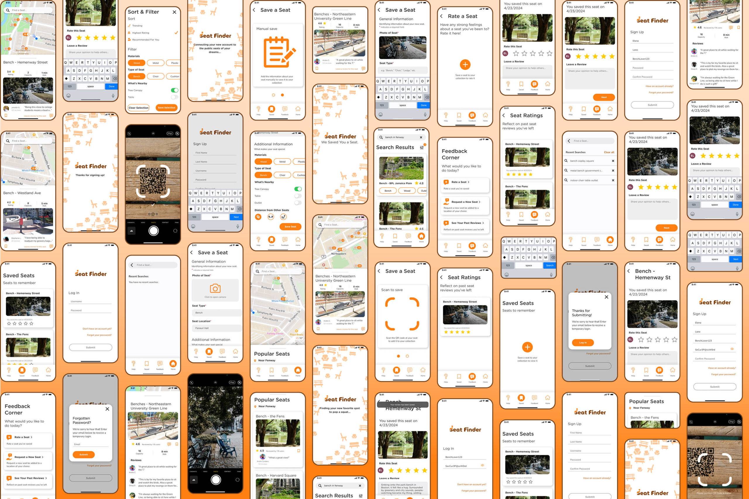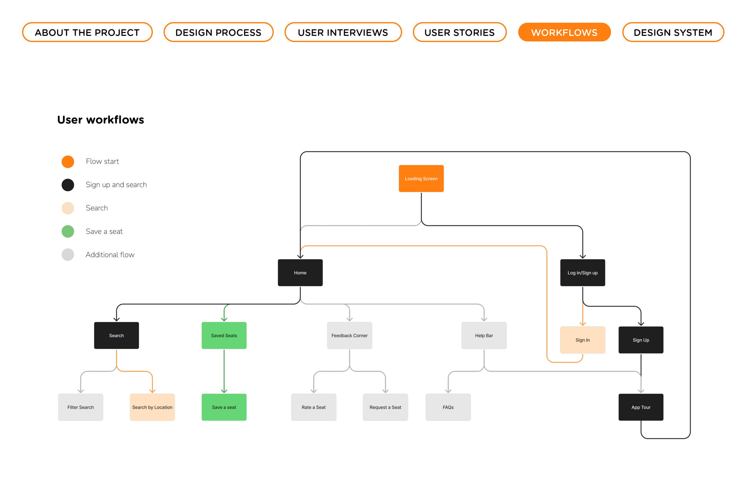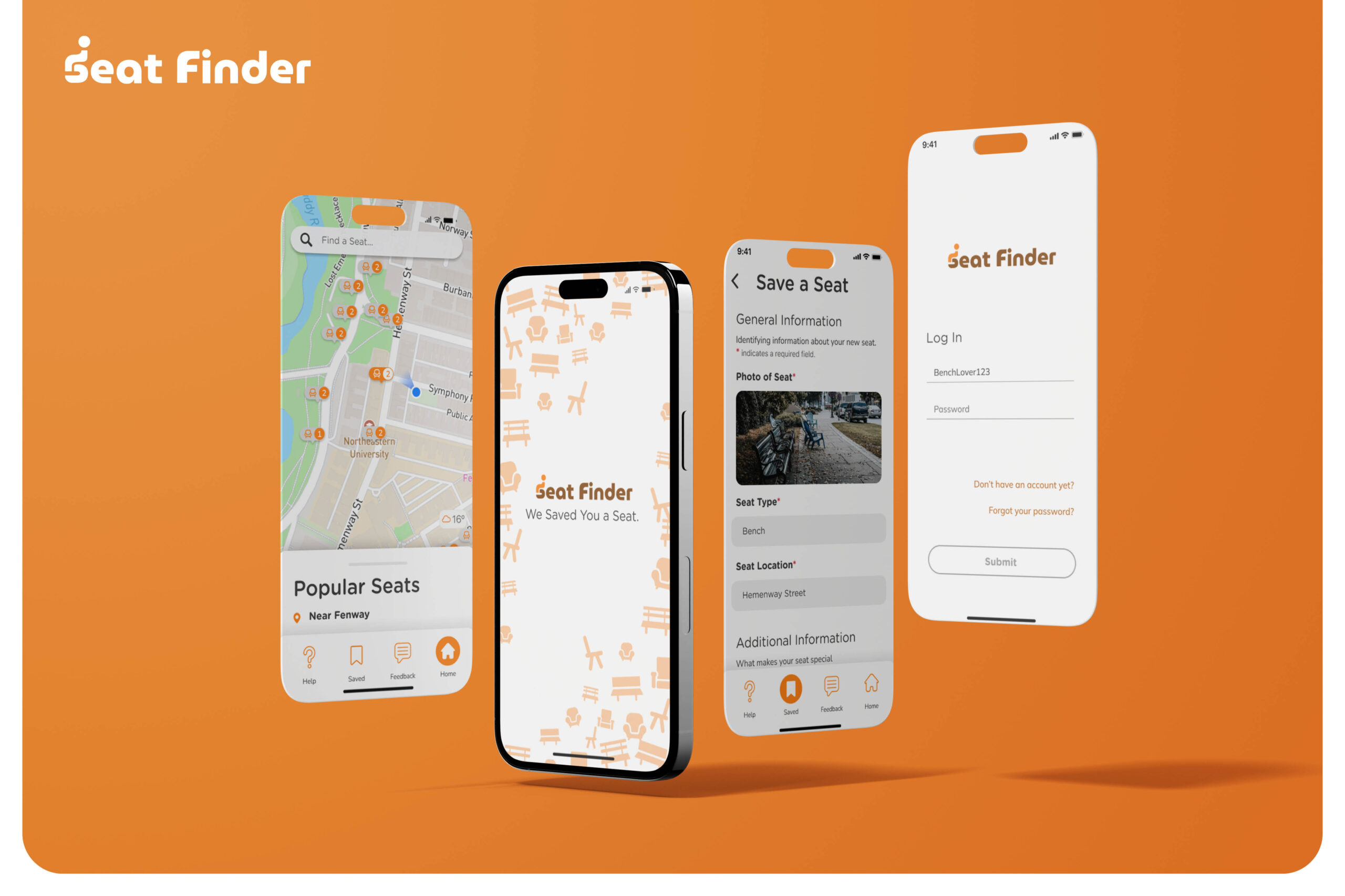 Figma prototype of the SeatFinder app, displayed on an iOS interface.