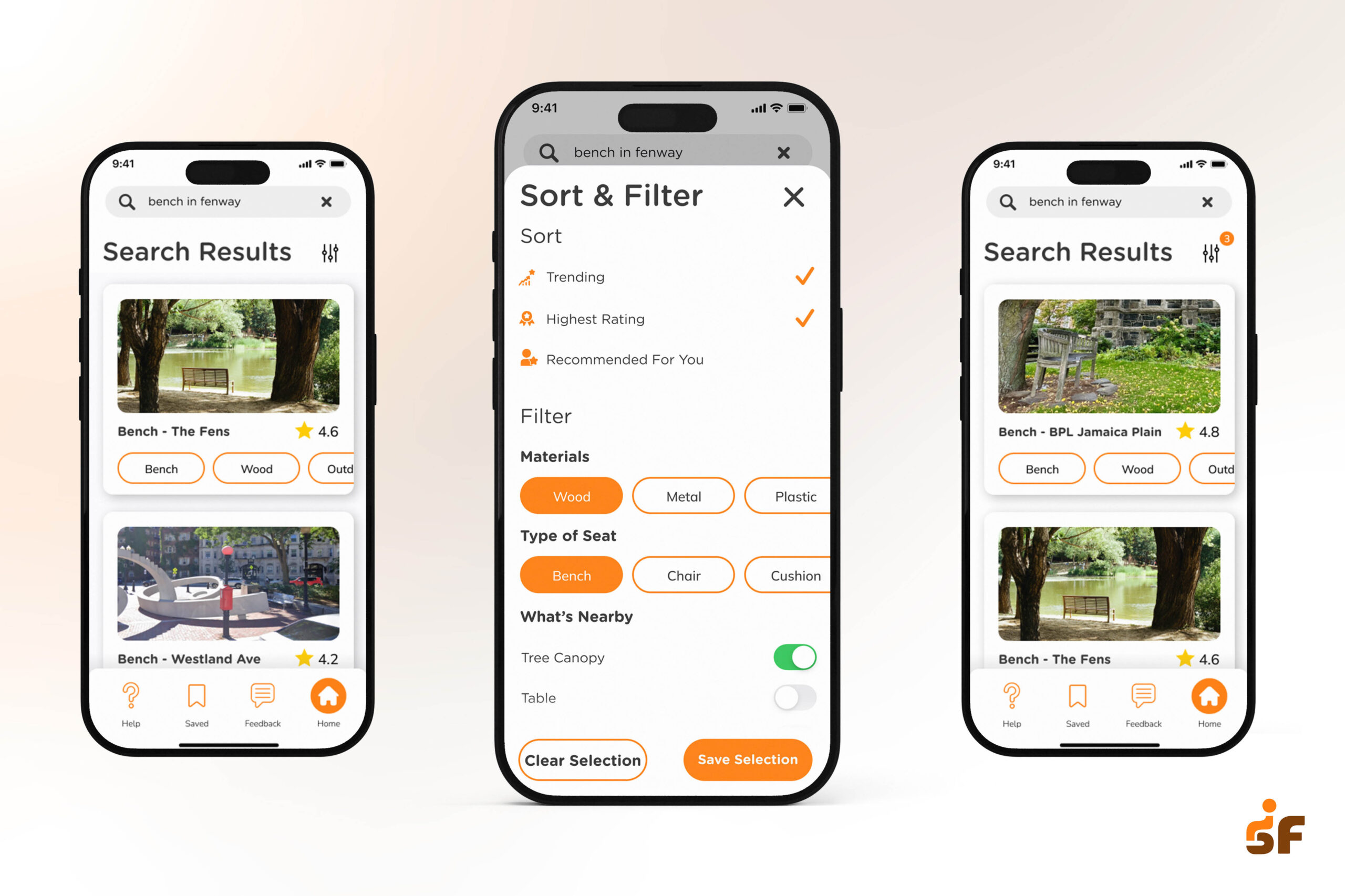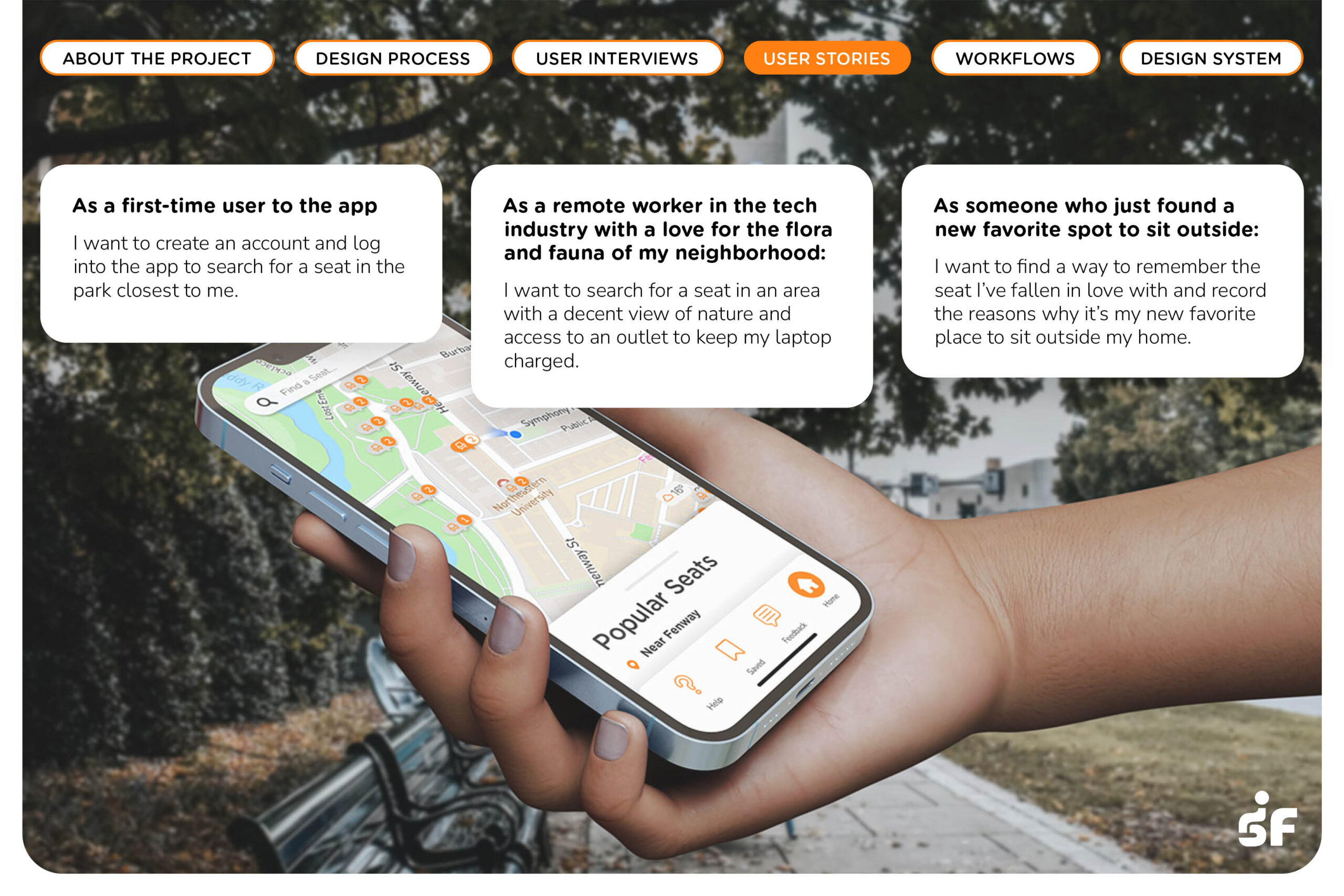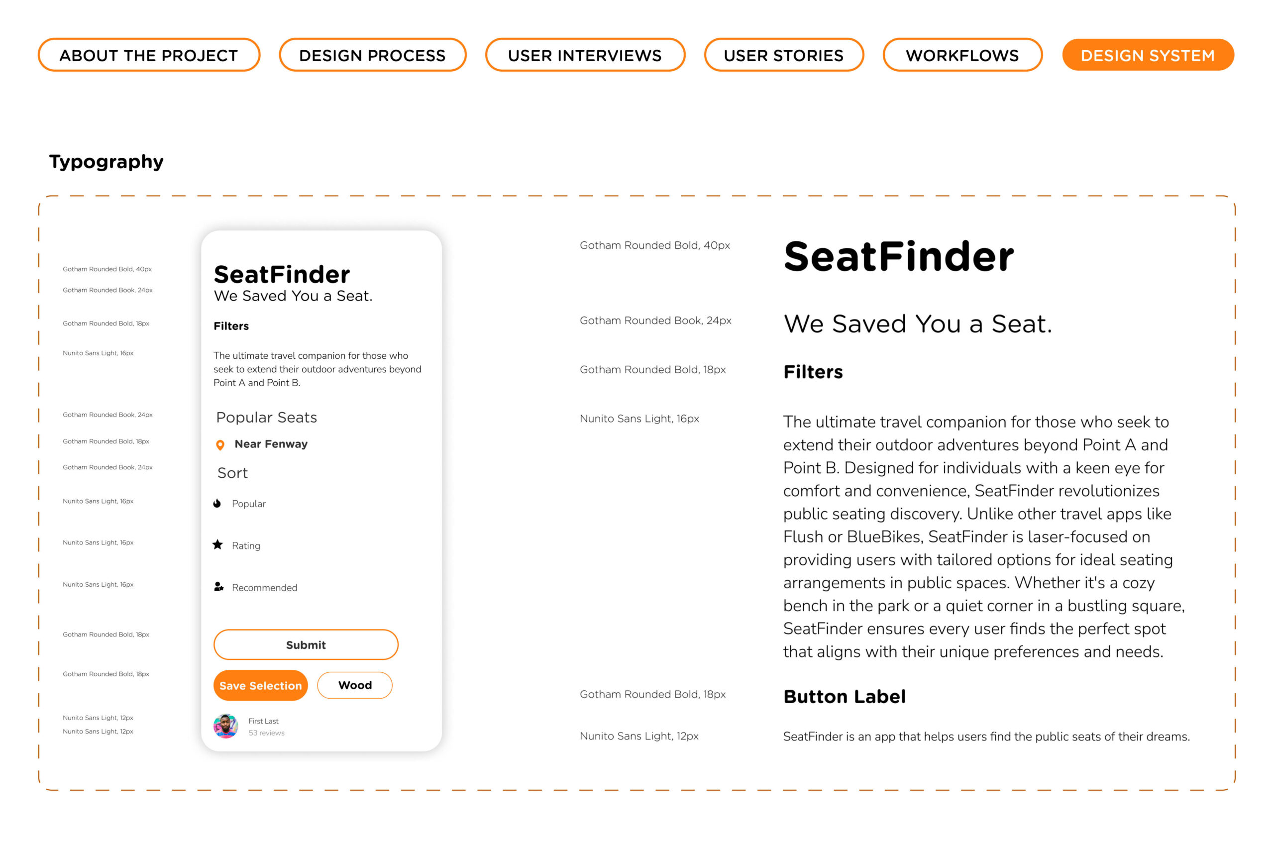 Figma prototype of the SeatFinder app, displayed on an iOS interface.