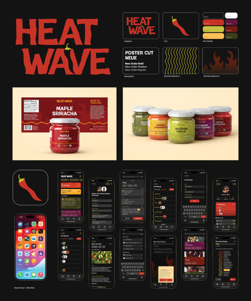 Heat Wave Brand Identity, Mobile App Design, Packaging Design 20″ x 24″ 2024