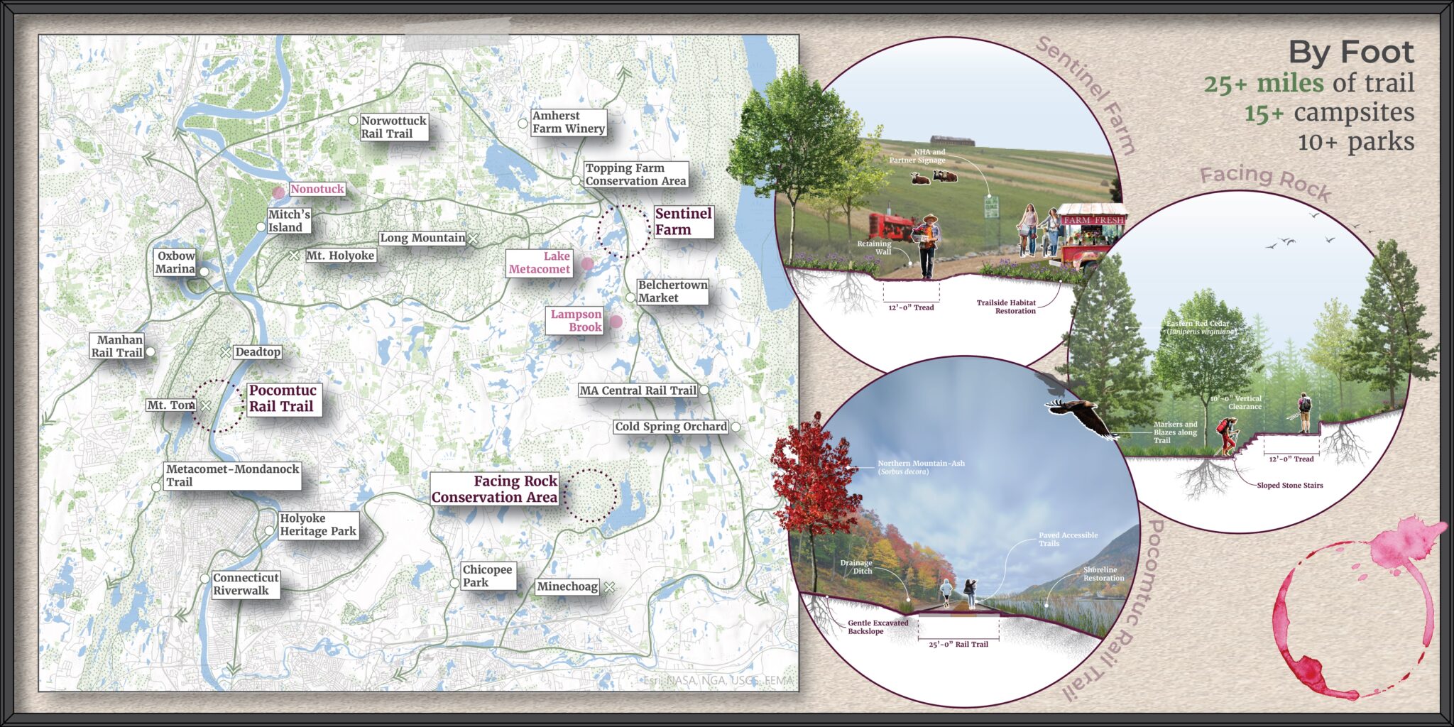 The Pioneer Valley National Culinary Heritage Trails, also known as the Savor the Valley Project, offer a unique way of experiencing Western Massachusetts. Visitors can hike, bike, drive, or even paddle throughout over 50 miles of trail and several thousand acres of recreation in a Slow Tourism experience that immerses them in local culture and provides opportunities to sample, learn about, and participate in the production of the Pioneer Valley’s rich food and drink – from New England classics to experimental wines to freshwater seafood. Nearby farms and other businesses can sell goods along the trails, offer tours, and provide overnight stays through camping and working farmstays. As a National Heritage Area project, local governments and stakeholders receive funding to maintain the trails and fund development projects, ensuring local ownership. The Savor the Valley Project embodies a new approach to tourism, empowering communities to benefit directly while offering visitors an educational and authentic experience