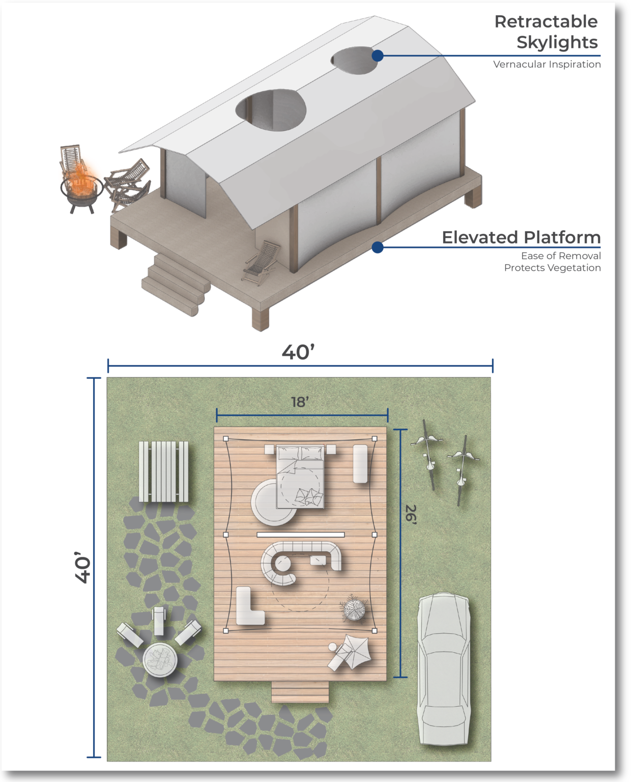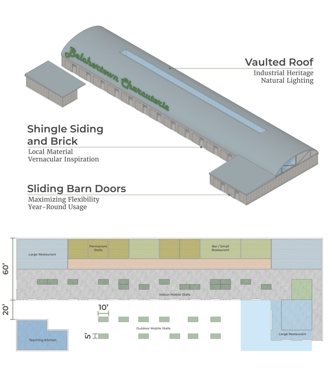 Playful nods to the region's history, local materials, and vernacular motifs in the architecture also provide opportunities for more local engagement through labor, material, and familiar construction.