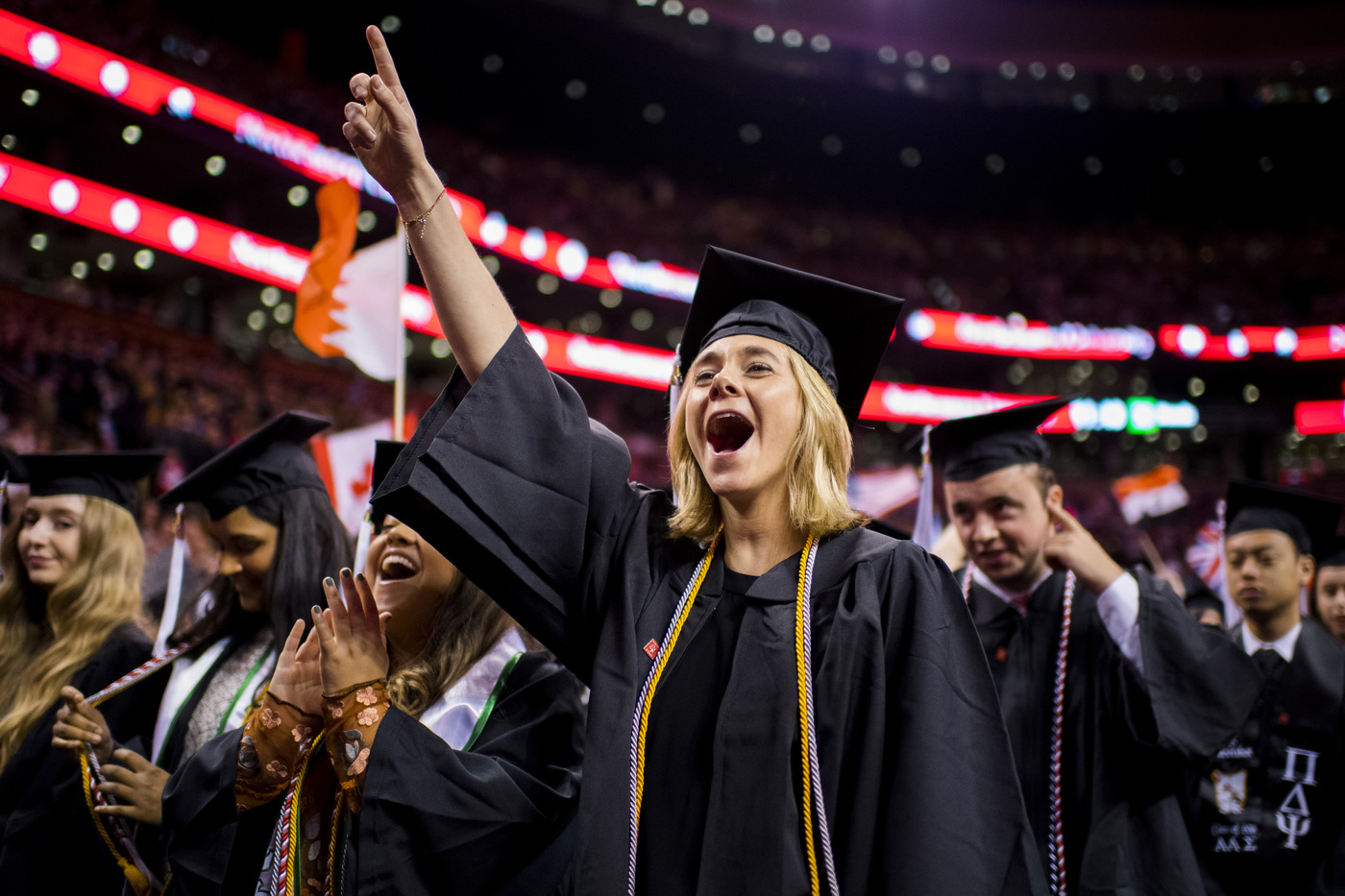 05/04/18 – BOSTON, MA. – Northeastern University celebrated its 116th Commencement on May 4, 2018. President Joseph E. Aoun led the undergraduate ceremony, which was held at TD Garden in Boston. Actor, advocate, and athlete Aimée Mullins delivered the Commencement address. Northeastern conferred honorary degrees upon a distinguished group of influential figures: Paula Kerger, CEO of PBS, John Sexton, president emeritus and professor, New York University, and Anthony Foxx, former U.S. Secretary of Transportation. Photo by Matthew Modoono/Northeastern University