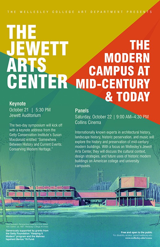 This two-day symposium, funded by a grant from the Getty Foundation “Keeping it Modern” Program and the Mahnaz Ispahani Bartos ‘79 Fund of Wellesley College, will explore the history and preservation of mid-century modern buildings. With a focus on Wellesley College’s Jewett Arts Center, internationally-known experts in architectural history, historic preservation, music, and landscape history will examine the cultural contexts, design strategies, and future uses of historic modern buildings on American college and university campuses.